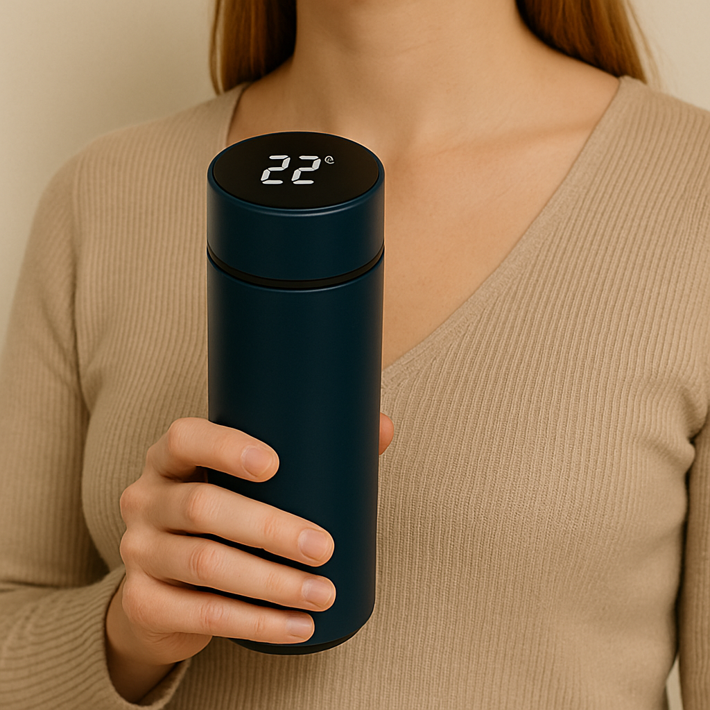 Meet Thermivo™, the intelligent thermos that blends innovation with elegance. With a smart LED temperature display and minimalist design, it keeps your drink